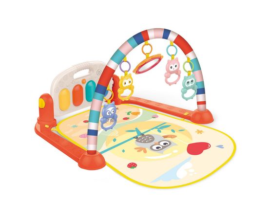 Коврик имеет интерактивное пианино, которое играет приятные мелодии.