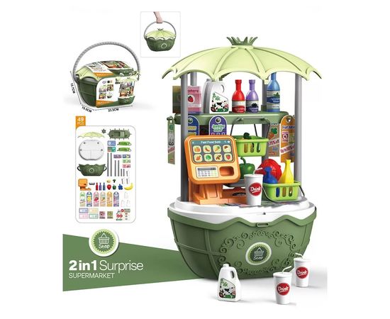 PITUSO Игровой набор СУПЕРМАРКЕТ в корзине 2в1 49 элементов