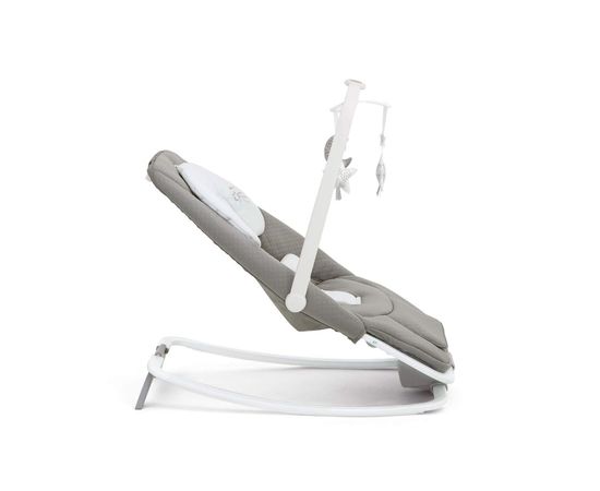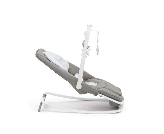 Мягкие покачивания шезлонга действуют на кроху успокаивающе и дают родителям передохнуть. Два уровня вибрации позволяют определять интенсивность покачиваний по усмотрению родителей. Для убаюкивающего эффекта предусмотрены пять классических мелодий колыбели. Вращающаяся дуга с игрушками развлекает малыша. В случае необходимости элемент можно снять одним движением руки. Мягкий вкладыш снимается и моется, так что проблем с поддержанием чистоты не возникнет.