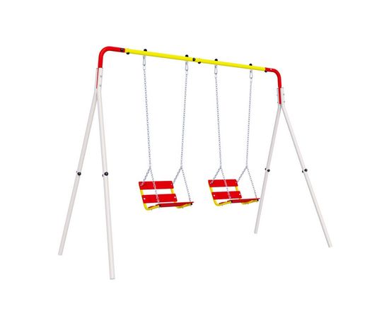 Самый любимый аттракцион детей всех возрастов — это, конечно же, качели. А с двойными качелями ROMANA вдвойне веселей! Нетерпеливым малышам не придётся ждать своей очереди, дети постарше смогут соревноваться — кто раскачается выше. Семья может быть спокойна — дети веселятся на свежем воздухе! ROMANA «Качели двойные» сделаны из прочных материалов, которые имеют соответствующие санитарно-эпидемиологические и гигиенические сертификаты. Конструкция представляет собой металлокаркас, на который крепятся навесные качели. Сиденья имеют различную модификацию. Одни имеют спинку и поручни, за которые удобно держаться детям младшего возраста. Дети старшего возраста отдадут предпочтение вторым качелям, в которых предусмотрена только перекладина-сиденье. Качели подвешены на крепких канатах, сделаны из атмосферостойких материалов — не нужно заносить в летнее время в дом. Компактная упаковка позволяет привезти изделие из магазина домой на легковом авто. ROMANA «Качели двойные» — идеальное решение для семьи, где двое детей. Подойдет для дачи и дома.