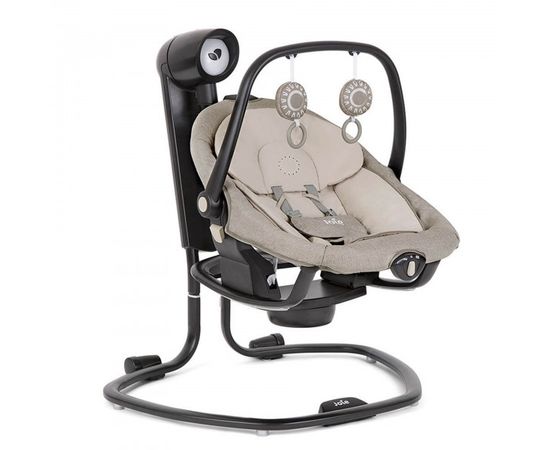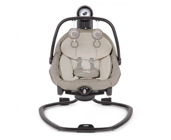 Мягкий и уютный шезлонг Serina SPECKLED имеет анатомическую форму, что очень важно для правильного развития спинки. Чтобы кроха не выпал, ворочаясь во сне или играя, предусмотрены пятиточечные ремни безопасности. Сиденье имеет форму ракушки с закругленными краями, чтобы ребенок не поранился. Вы можете регулировать наклон в 3 различных положениях, включая горизонтальное для сна. Сиденье Joie Serina 2 в 1 устанавливается как боком, так и спиной к основе, от чего зависит траектория его движения (справа налево, или вперед-назад). Для детишек разного возраста предусмотрено 6 скоростей качания и 2 скорости вибрации (для работы вибромодуля нужна батарейка). Для развлечения малыша, а также для развития его визуальных, тактильных и слуховых способностей, над люлькой крепится вращающаяся дуга с игрушками и есть функция музыкального сопровождения (5 колыбельных мелодий и 5 природных композиций). Металлический каркас Joie Serina 2 в 1 легкий и устойчивый. Чтобы качели было удобно перемещать по квартире, есть встроенная ручка и два маленьких колесика в основании.