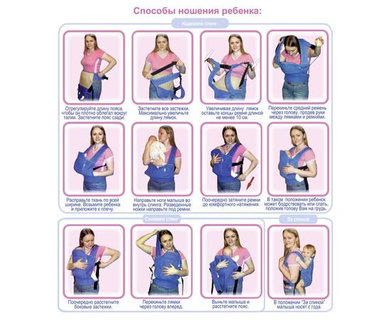 В кенгуру — слинге малыш естественным образом присажен на мамину талию, а не висит на промежности, как в обычной «кенгурушке». Вес ребенка равномерно распределен по телу мамы, поэтому малыш кажется значительно легче.