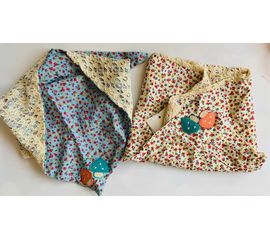 Набор 2в1 Косынки-треугольник на шею голубая+бежевая , с одной стороны кружево, с другой ситец с аппликацией грибочков размер 30*70