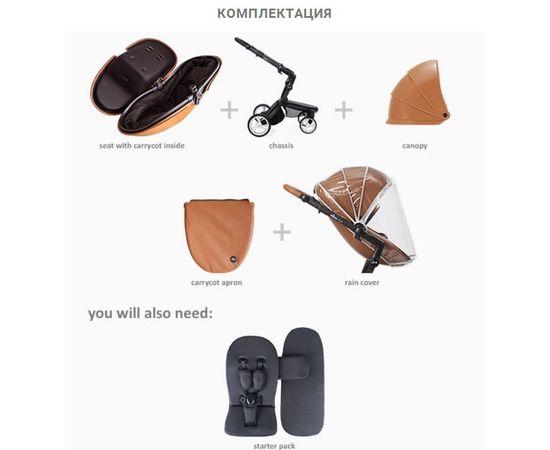 - комплект Starter Pack (матрасик для люльки, матрасик для прогулочного блока, накидка на люльку с отворотом);