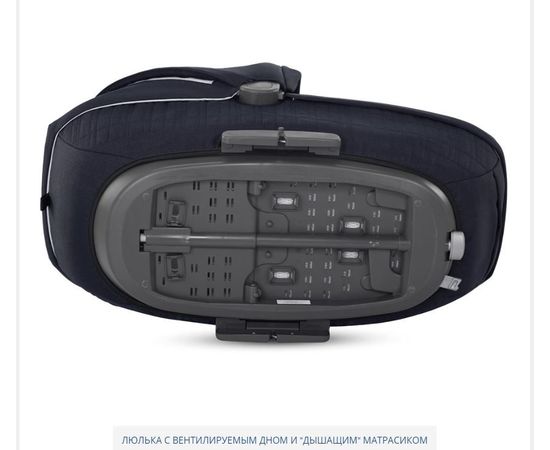 Комфортный климат и естественная циркуляция воздуха внутри люльки обеспечивается за счет «дышащего» матрасика и вентиляционных отверстий на дне каркаса. Дома люльку можно снять с шасси и установить на специальную подставку stand-up.
