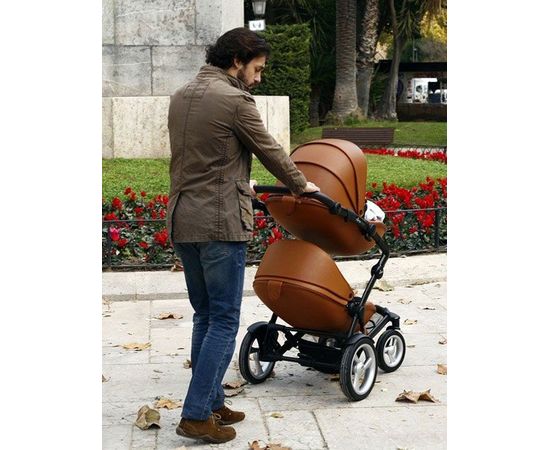 В этой коляске объединились два прогулочных блока и люльки, спрятанные в блоки. Чтобы превратить блок в люльку его достаточно расстегнуть молнию по периметру блока. На шасси можно установить два автокресла группы 0+. В любом месте эта компактная элегантная коляска будет привлекать себе внимание.