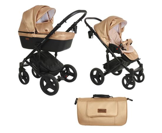 Коляска Pituso 2в1 Prestigio КОЖА Золото/черный Рама Черная