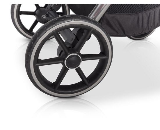 Колеса на коляске Riko Qubus полиуретановые, не требующие подкачки. В коляске применена новая система адаптеров, которая еще надежнее фиксирует люльку на раме. Ткань, используемая в коляске отличного качества, не промокает и не выгорает на солнце.