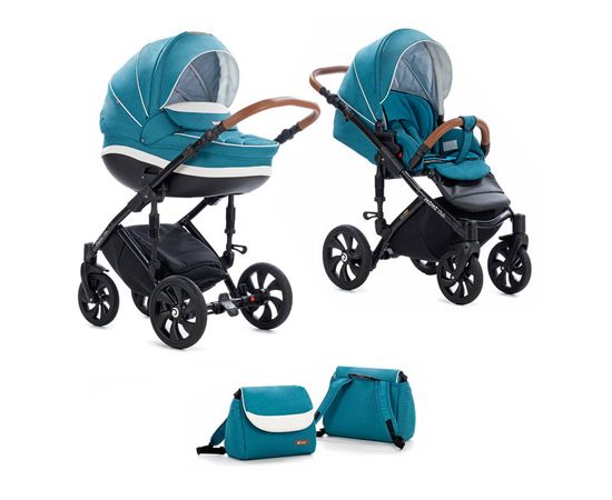 Коляска Tutis 2в1 Mimi Style Лен цвет Морской волны+ кожа Белая