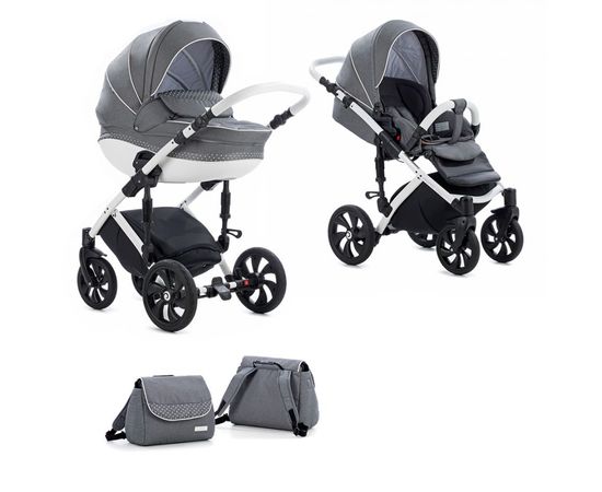Коляска Tutis 2в1 Mimi Style Серый лен+ белый горох + кожа Белая рама