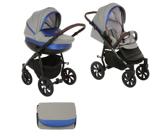 Коляска Tutis Nanni 2в1 Real Gel Серый+Кожа Синий Перламутр/Черная рама/Гель.колеса 892342