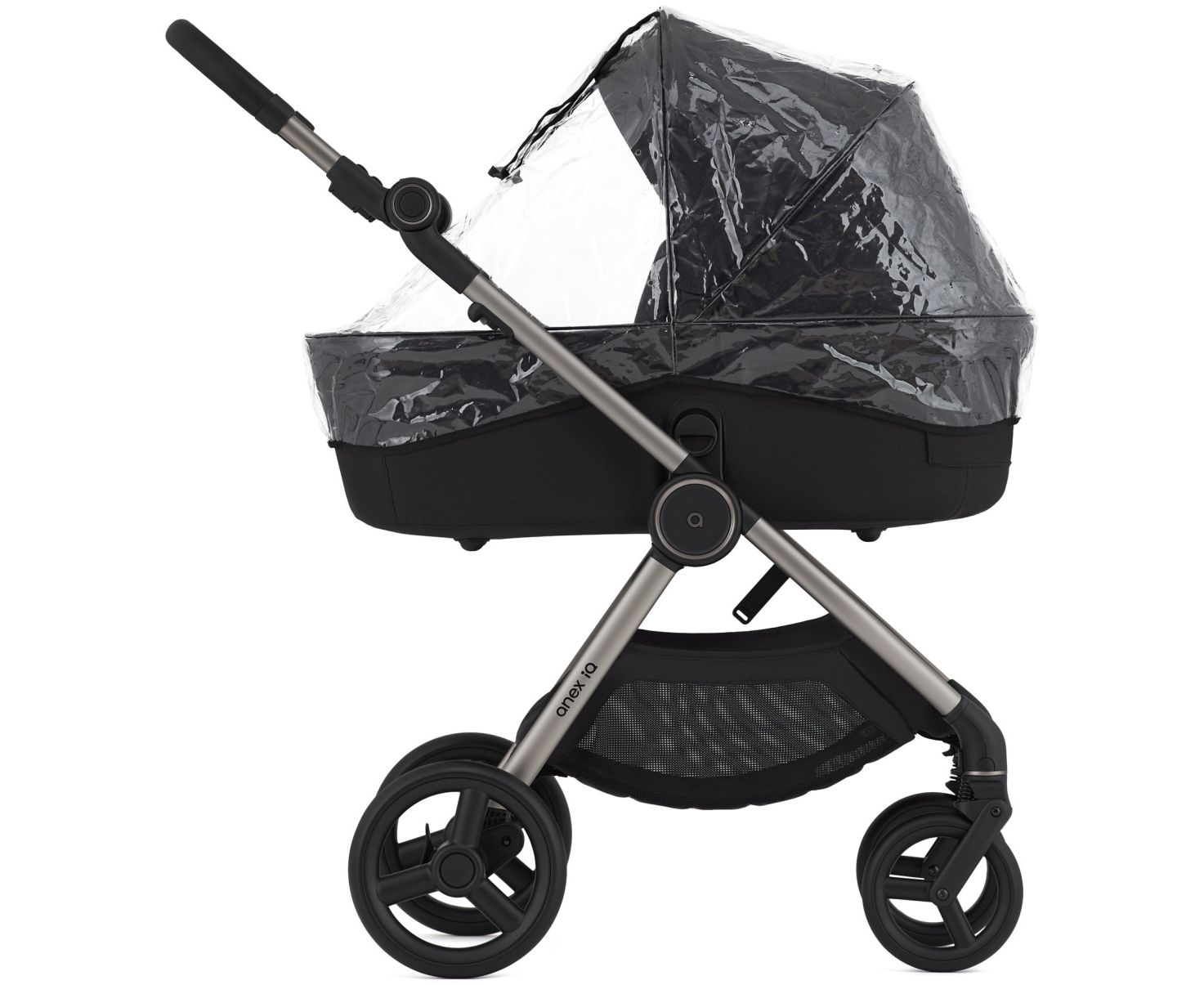Капюшон коляски 3 в 1 Anex iQ с дополнительной секцией предоставляет дополнительную защиту от солнечных лучей и ветра. Он легко снимается, что облегчает использование люльки и обеспечивает возможность ее чистки.