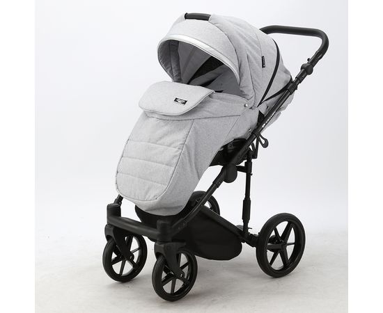 В комплектацию 2 в 1 входит вместительная люлька и прогулочный блок. Спальный модуль сделан из современного, устойчивого к повреждениям и ультралегкого пластика, обтянутого экокожей. Сама коляска сочетает в себе водонепроницаемый текстиль и обивку из искусственной кожи. Люлька характеризуется наличием регулируемого подголовника. Капюшон большой, в нем есть дополнительная секция с антимоскитной сеткой на молнии. В накидке на ножки есть отворот с окошком для непрерывного наблюдения за ребенком. Внутренние чехлы съемные, полностью выполнены из гипоаллергенного хлопка. У матрасика есть кокосовый наполнитель. На дне спального модуля предусмотрено вентиляционное отверстие для более комфортных прогулок летом.