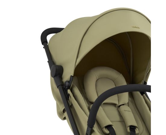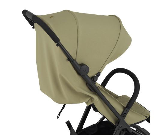 • Спинка сиденья может быть полностью трансформирована в открытую вентиляцию. Большой капюшон защищает от солнца, а вентиляция добавляет прохлады