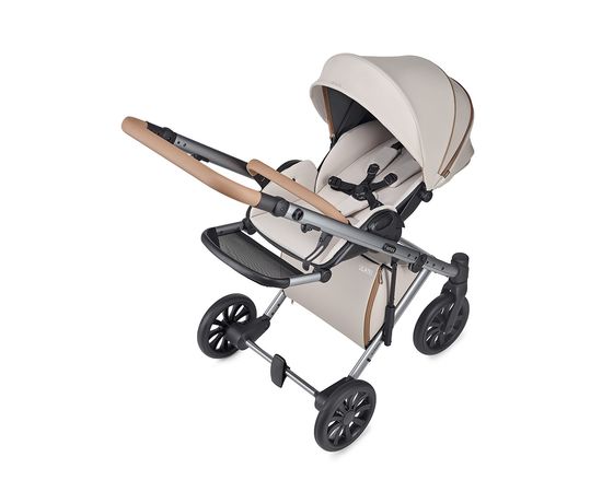 • Тройная система амортизации обеспечивает абсолютно плавную прогулку и маневренность коляски.