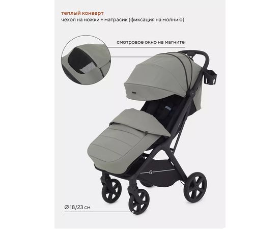 - для знойных дней изголовье коляски дополнено большим вентиляционным окном на молнии