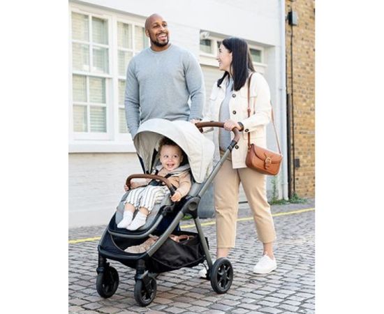 Joie Finiti Signature можно сложить одной рукой. Опустите спинку к подножке, а затем потяните за рычажок под сиденьем. Готово! Коляска сложилась и превратилась в сумку на колёсах. Её легко положить в багажник автомобиля, ведь Finiti достаточно компактна в сложенном виде и занимает немного места. Рукоять покрыта мягкой и приятной эко-кожей. У неё объемный и приятный хват. Вы сможете легко подобрать нужную вам высоту ручки, ведь она телескопически регулируется.