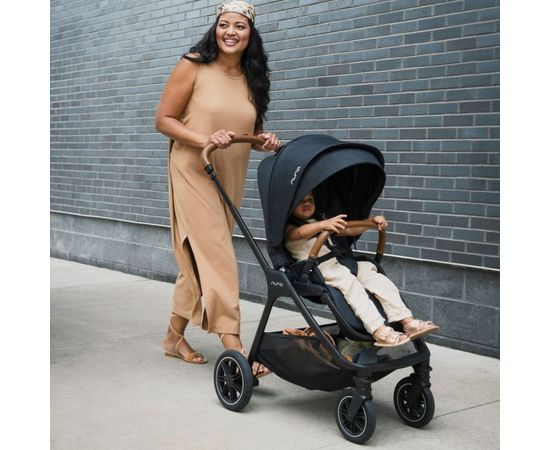 Nuna Triv Next - разработана для удобства родителей и комфорта малыша, амортизация всех колес, тормозная система с одним касанием и большие задние колеса обещают легкую маневренность и мягкую прогулку по городу.