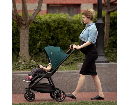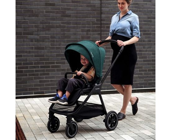Nuna Triv Next - разработана для удобства родителей и комфорта малыша, амортизация всех колес, тормозная система с одним касанием и большие задние колеса обещают легкую маневренность и мягкую прогулку по городу.