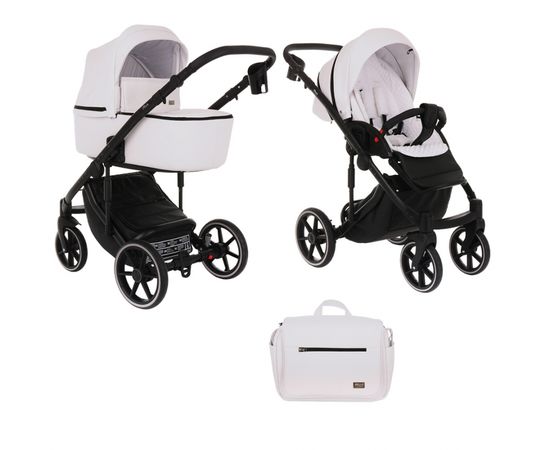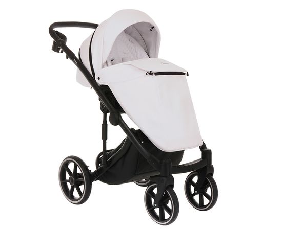 Коляска PITUSO 2 в 1 BELLA короб+прогулка Кожа Белый /Рама Черная/Гель.колеса