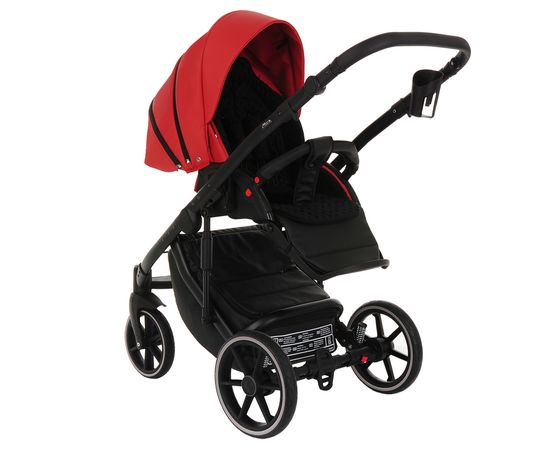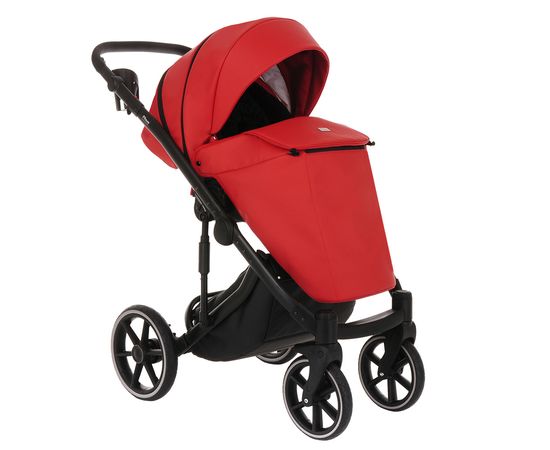 Коляска PITUSO 2 в 1 BELLA короб+прогулка Кожа Красный /Рама Черная/Гель.колеса