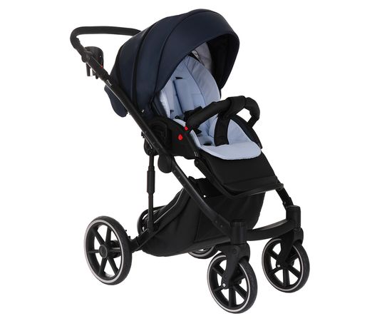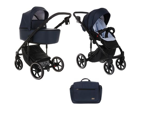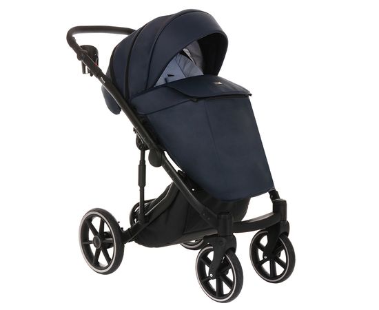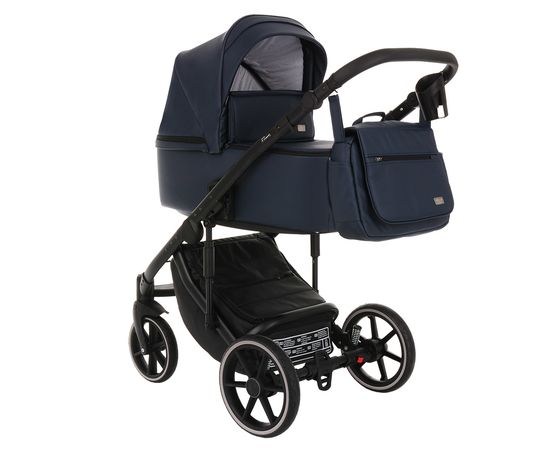 Коляска PITUSO 2 в1 BELLA короб+прогулка Кожа Синий /Рама Черная/Гель.колеса