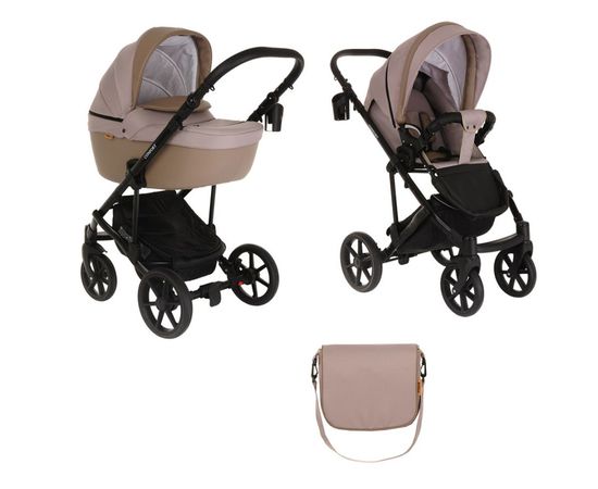 Коляска Pituso CONFORT PLUS 2 в 1 2020г.Капучино+Кожа Капучино/Рама Черная/Гель.колеса плюс