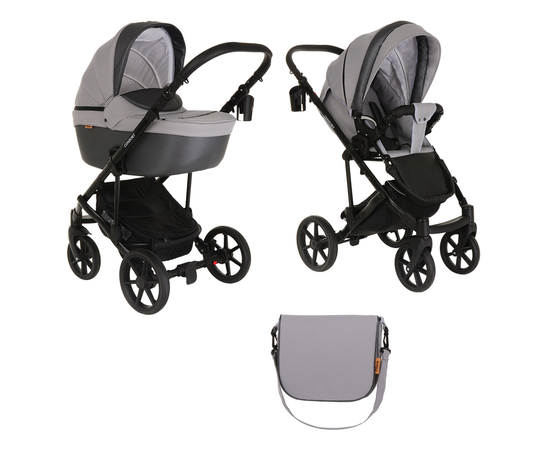 Коляска Pituso CONFORT PLUS 2 в 1 2020г.короб+прогулка Серый+Кожа Тем.Серый/Рама Черная/Гель.колеса плюс