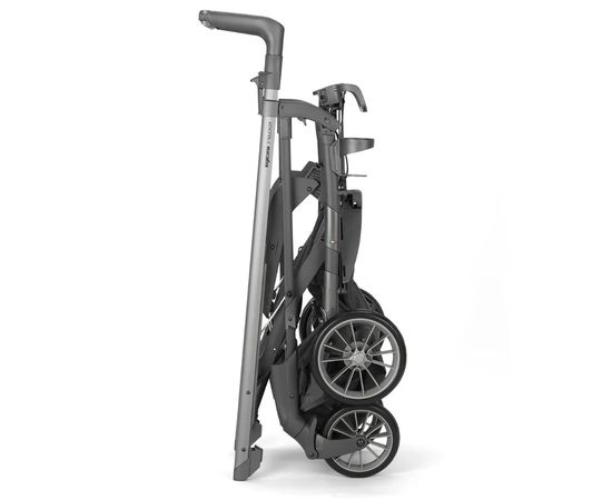 - Предусмотрена возможность складывания шасси вместе с прогулочным блоком, установленным как по ходу движения, так и лицом к родителю; модель устойчива в сложенном виде, не касаясь обивкой земли