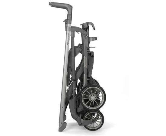 - Предусмотрена возможность складывания шасси вместе с прогулочным блоком, установленным как по ходу движения, так и лицом к родителю; модель устойчива в сложенном виде, не касаясь обивкой земли