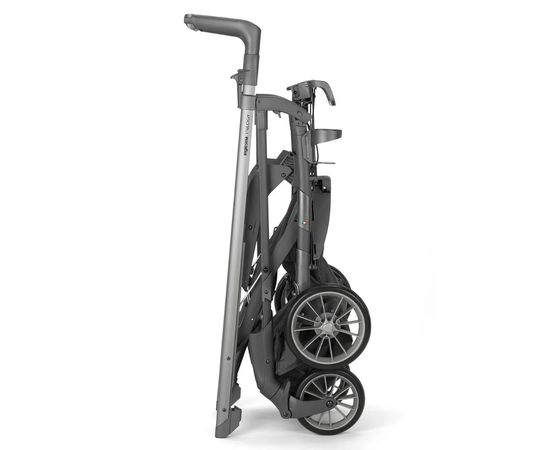 - Предусмотрена возможность складывания шасси вместе с прогулочным блоком, установленным как по ходу движения, так и лицом к родителю; модель устойчива в сложенном виде, не касаясь обивкой земли