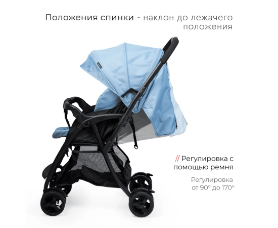 Полностью горизонтальное положение спинки позволяет использовать коляску для новорожденных