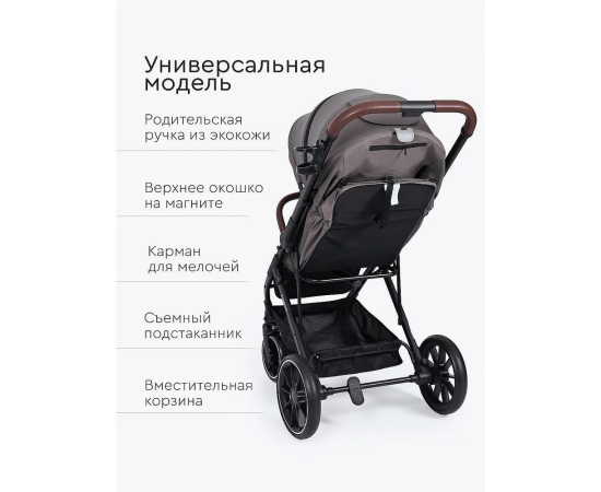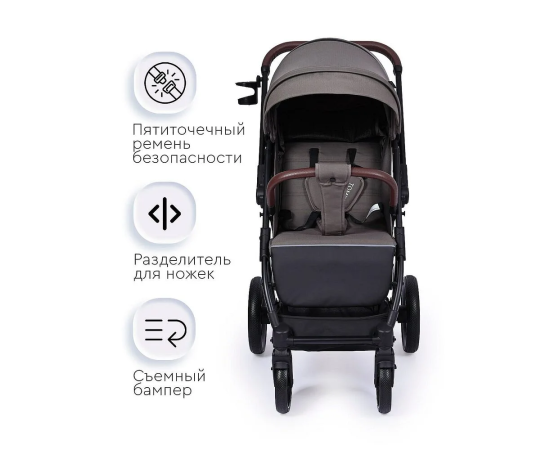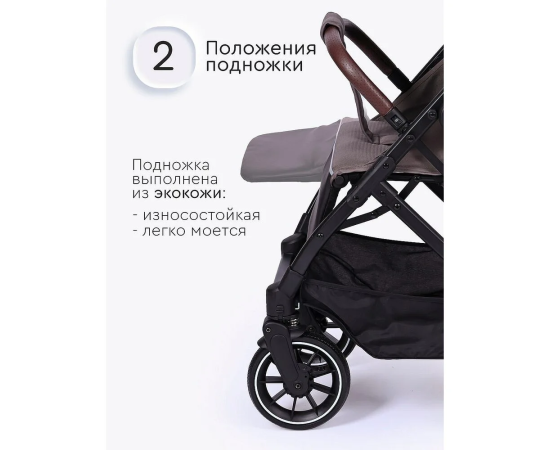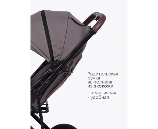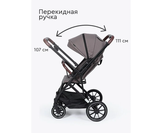 - Родительская ручка так же с отделкой из эко кожи. Высота ручки при положении ребенка лицом к родителям 107 см. Высота ручки при положении ребёнка к окружающему миру 111 см.