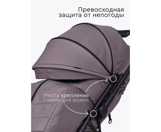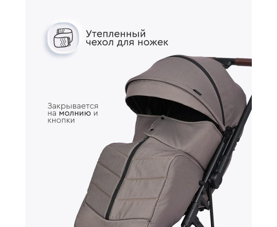 - Утепленный чехол для ножек с замочком посередине, для удобной посадки ребёнка. Чехол крепиться к раме коляски на липучки