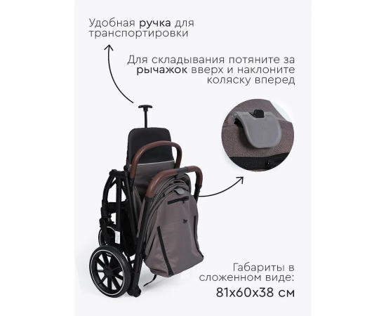 - Габариты коляски в разложенном виде ДхШхВ 82х60х114 см