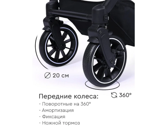 - Передние колеса с амортизацией, поворотные с фиксацией. Ø 20 см.