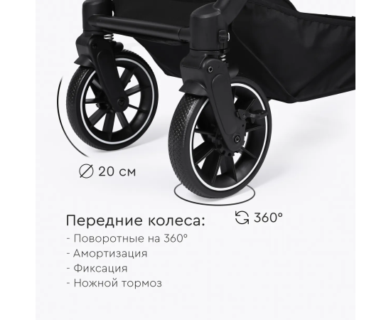 - Передние колеса с амортизацией, поворотные с фиксацией. Ø 20 см.