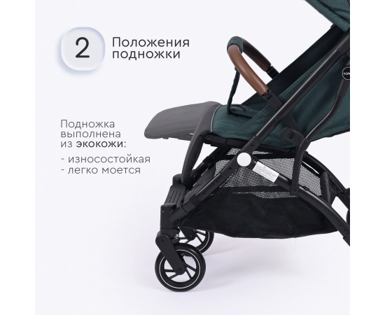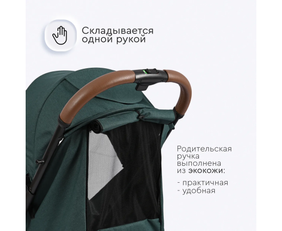 - Отделка родительской ручки и бампера экокожей высокого качества;