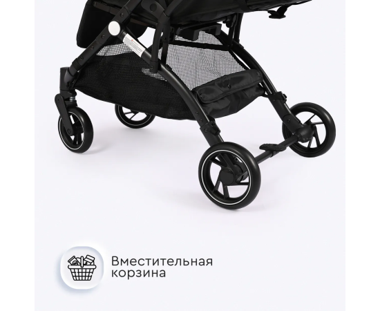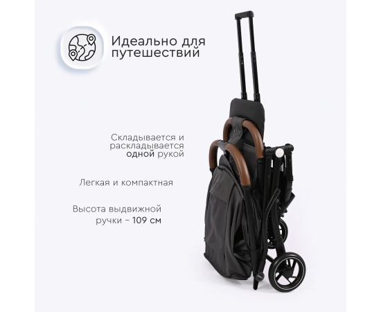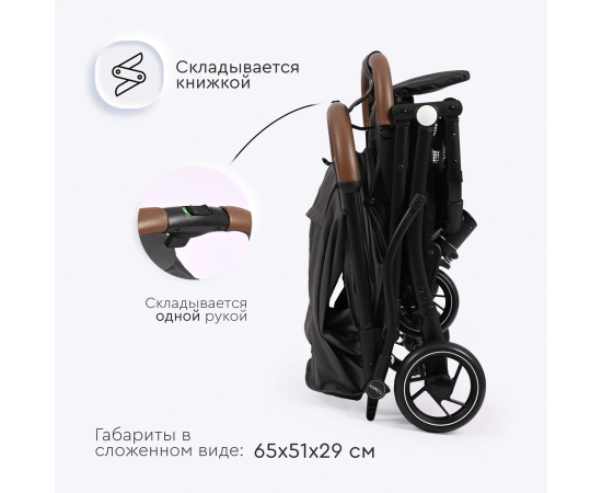 - Коляска компактно и быстро складывается одной рукой, стоит без опоры в сложенном виде;