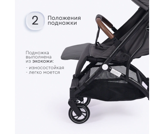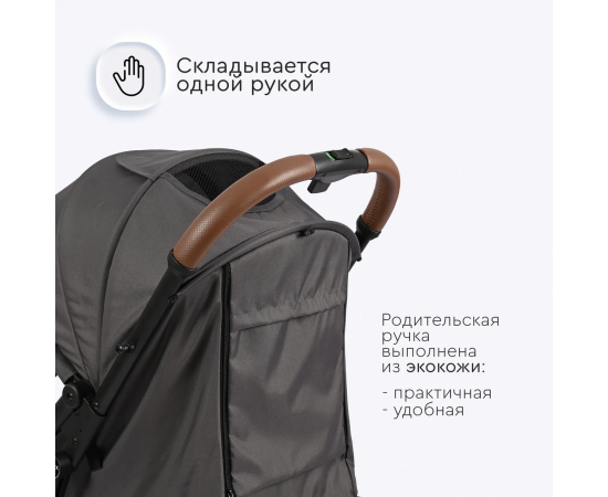 - Отделка родительской ручки и бампера экокожей высокого качества;