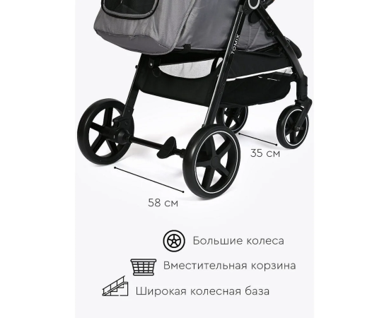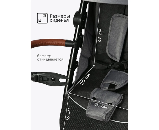 - Большое посадочное место. Вместиться карапуз в комбинезоне. Глубина сиденья 20 см, Ширина 35 см Высота спинки 42 см. Длина подножки 16 см