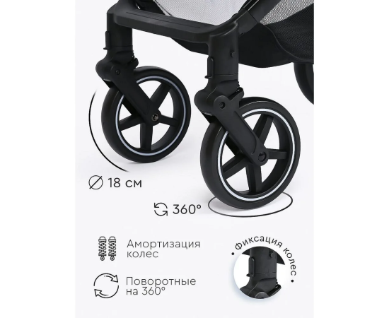 - Передние колёса поворотные, с фиксацией Ø 18 см