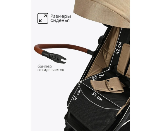 - Большое посадочное место. Вместиться карапуз в комбинезоне. Глубина сиденья 20 см, Ширина 35 см Высота спинки 42 см. Длина подножки 16 см