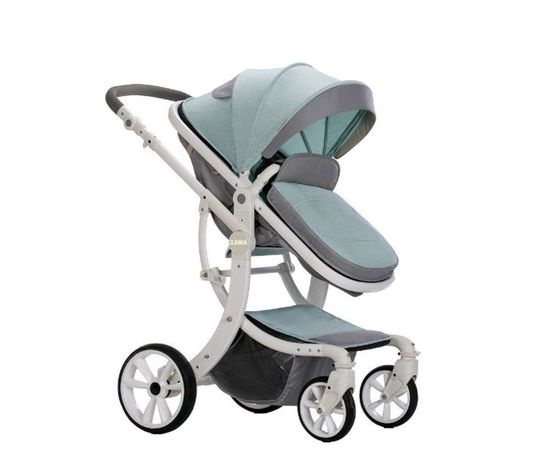 Коляска 2 в 1 AIMILE (ЭМИЛИ), Люлька + прогулочный блок, алюминиевая рама, съемные колеса, поворотные передние колеса с фиксаторами, ножной стояночный тормоз, регулировка угла наклона ручки. В комплект входит: матрасик, пятиточечные ремни безопасности, корзина для покупок;
