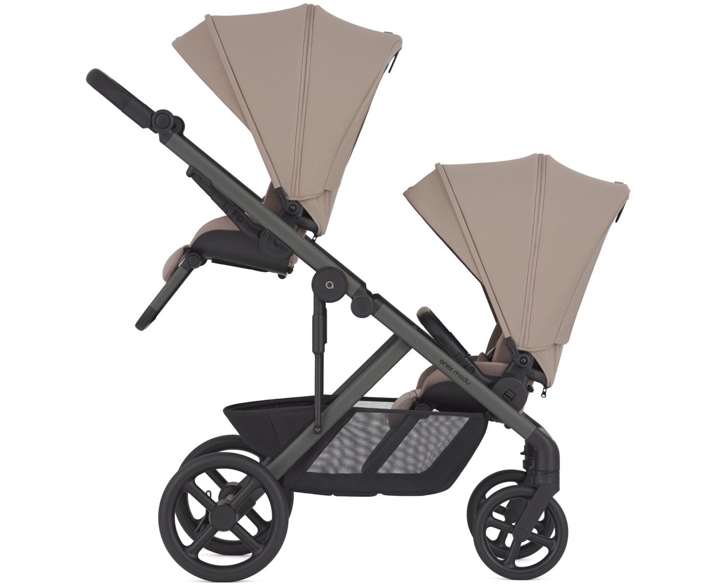 Modu легко превращается из обычной коляски в модель для близнецов и детей разного возраста, в коляску-вагончик или в переноску для питомца. (*Дополнительные конфигурациии приобретаются отдельно.)