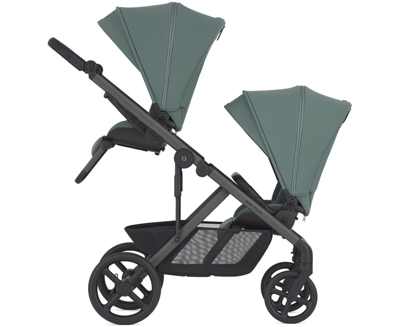 Modu легко превращается из обычной коляски в модель для близнецов и детей разного возраста, в коляску-вагончик или в переноску для питомца. (*Дополнительные конфигурациии приобретаются отдельно.)