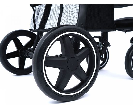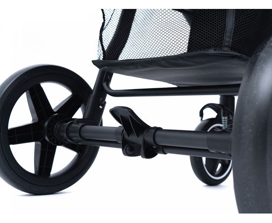 - поворотные передние колеса с амортизацией и возможностью фиксации диаметром 20 см, задние колеса – 28 см;