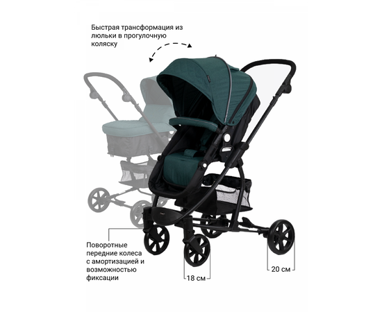 - быстрая трансформация из люльки в прогулочную коляску;