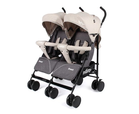 Коляска-трость для двойни Indigo Duet, бежево-серый