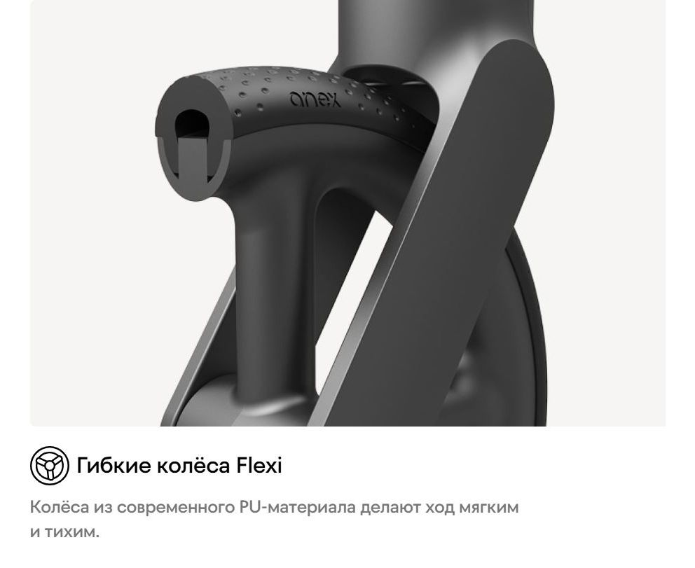 Колёса из современного PU-материала делают ход мягким и тихим.